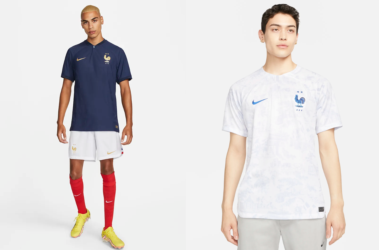 A atual campeã mundial, França, foi uma das equipes que teve os equipamentos revelados e utilizará a camisa principal toda em um tom azul escuro, enquanto a reserva é branca com desenhos sombreados. Além desta, Inglaterra, Holanda e Estados Unidos também irão utilizar o material da Nike.